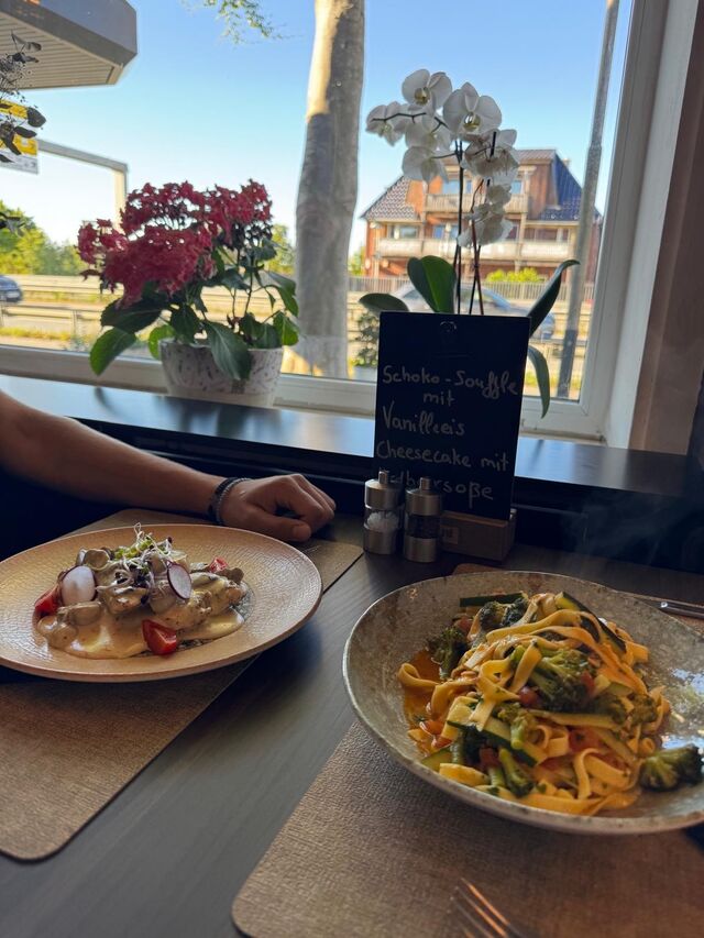 Für alle Naschkatzen bieten wir köstliche Desserts wie cremigen Cheesecake und feines Tiramisu. Auch Ihre besonderen Ernährungswünsche liegen uns am Herzen – deshalb finden Sie bei uns eine Auswahl an glutenfreien, laktosefreien, veganen und vegetarischen Gerichten. Ergänzen Sie Ihr Menü mit erfrischenden Getränken und lassen Sie sich von unserem freundlichen Team verwöhnen – ob zum Mittag- oder Abendessen.